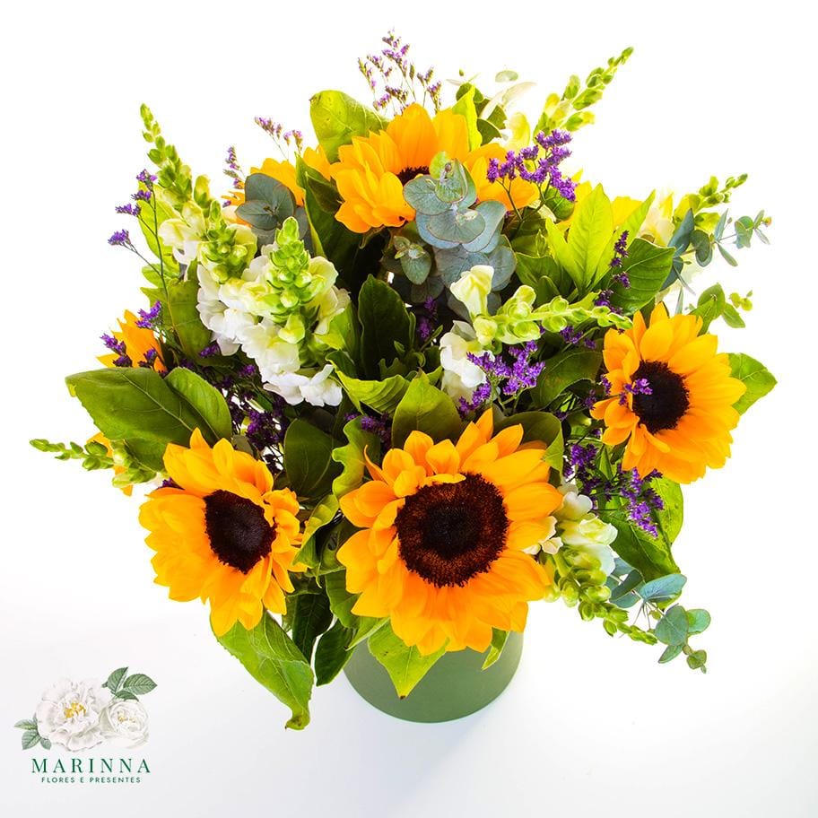 1 arranjo com 8 girassóis,
