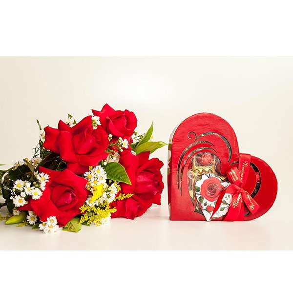 Buquê de Rosas Vermelhas com Chocolate em Formato de Coração