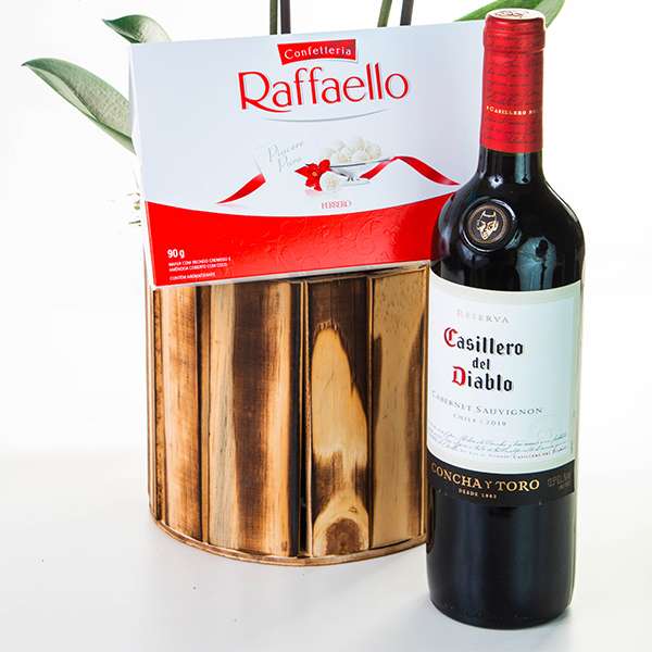 Orquídea Plantada Phalaenopsis Azul Vinho Chileno Casillero Rafaello 90g Embalagem para presente